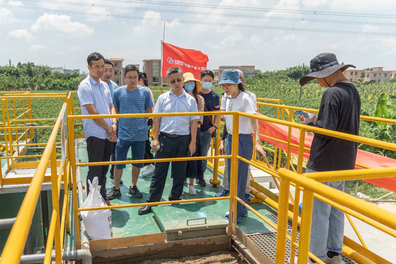 隨后,一行人考察了南沙區(qū)農(nóng)村生活污水查漏補(bǔ)缺治理工程項(xiàng)目工地,黨支部在項(xiàng)目中成立了“黨員先鋒崗”,帶領(lǐng)項(xiàng)目組成員攻堅(jiān)克難、矢志創(chuàng)新,經(jīng)過不懈的努力,實(shí)現(xiàn)了農(nóng)村污水的終端收集及清污分流后的達(dá)標(biāo)排放,有力改善了南沙地區(qū)的水生態(tài)環(huán)境??疾熘校铗E飛大師引導(dǎo)黨員就污水處理工藝及技術(shù)進(jìn)行了深入討論,充分激發(fā)了黨員的創(chuàng)新精神和投身環(huán)保事業(yè)的熱情。