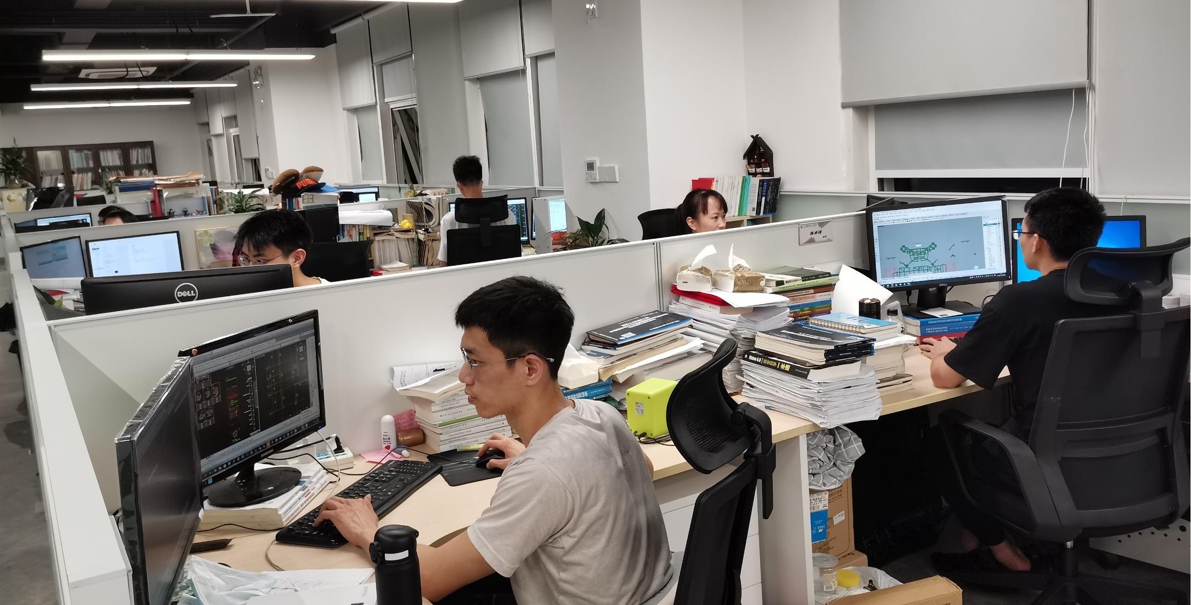 再硬的骨頭也要啃下來,再重的任務(wù)也要扛起來,再難的項目也要攻下來,這是項目組全體成員的共識,尤其是黨員劉曉琴、劉高子、周桂林、鄧小華、吳丹等同志,結(jié)合設(shè)計工作,主動申請創(chuàng)建了共產(chǎn)黨員先鋒崗,成為輻射帶動大家奮勇向前的中堅力量。2019年國慶將至,沒有人談?wù)撊绾螝g度假期,大家都在埋頭畫圖。劉曉琴同志更是沖在最前面,她是結(jié)構(gòu)專業(yè)總協(xié)調(diào),還是3個年幼孩子的媽媽,每天深夜回家時,寶貝已酣然入睡,她既欣慰又愧疚,最需要媽媽陪伴的童年自己卻總是缺席,但她說:“項目是我另一個難以割舍的孩子。”這種拼命三娘般的干勁,讓項目組成員感到由衷欽佩,大家都說:“她這么難都能堅持,我們忙點累點算什么”。咬定目標(biāo)不放松,埋頭苦干出成果,項目組在1個月內(nèi)拿出了設(shè)計基礎(chǔ)圖和五層地下室圖紙,完成了業(yè)主言稱“不可能的任務(wù)”。
