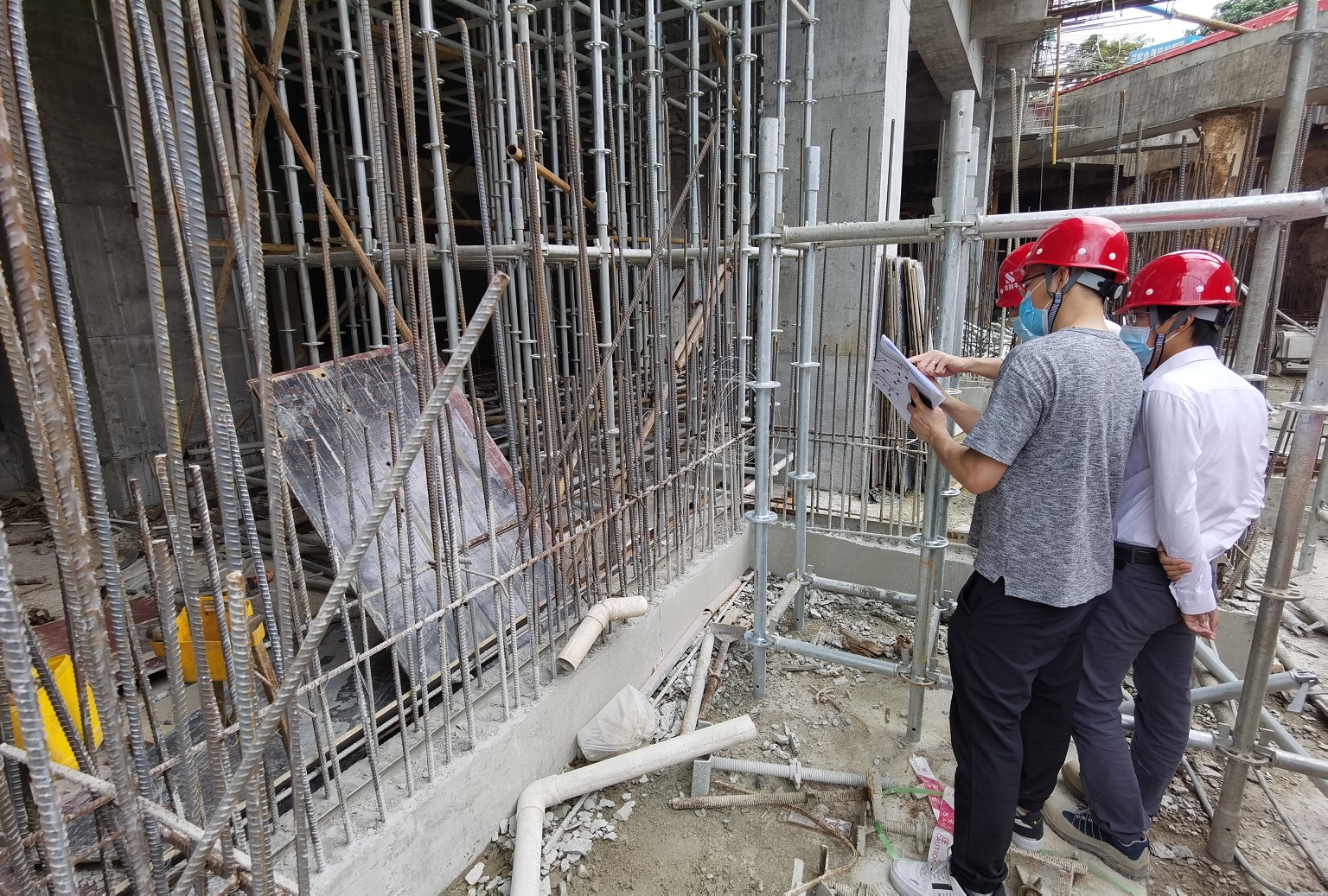 項目的另一個特點就是技術(shù)難度大,B座造型特別不規(guī)則,20層以下施工圖已完成,20層以上的結(jié)構(gòu)設(shè)計中,一個小小的改動就可能導(dǎo)致整體結(jié)構(gòu)失衡,已完成的施工圖被迫調(diào)整,為了避免這些情況,劉高子、吳丹等同志每天反復(fù)做計算分析比較,投入了大量的時間精力,在今年三四月份疫情期間,都堅持每天到崗并加班至深夜,連清潔阿姨都感慨不已,年輕人頭發(fā)掉這么多,可不是一般的費腦。D座塔樓接近250米,是我公司承接項目中最高的建筑之一,這對于項目組成員來說,還是花姑娘上轎頭一回。因建筑功能需要,核心筒只能偏置一邊,豎向構(gòu)件截面尺寸受到限制,導(dǎo)致整體結(jié)構(gòu)剛度偏弱,剛重比偏小,周桂林同志帶領(lǐng)小組成員時刻關(guān)注數(shù)據(jù)變化,想方設(shè)法增加結(jié)構(gòu)剛度。功夫不負(fù)有心人,技術(shù)難題逐一化解,截至目前,A、B座塔樓接近封頂,C、D座施工也正如火如荼。